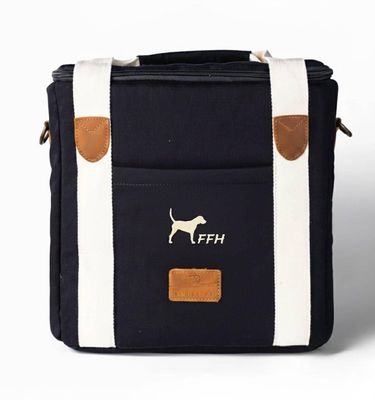 Like a bag, only cooler. This Slowlife Collection navy and cream stylish satchel keeps up to 12 cans cold and refreshing for up to 24 hours and is made to fit bottles of all sizes (including champagne bottles - woohoo!). With a flexible internal layout, the middle compartment can be fixed back to make more room for larger snacks or containers, allowing you to fill the bag however you please. Featuring a navy and cream striped interior and leather details.